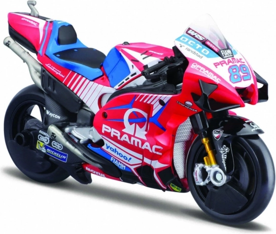 Verniciatura realistica nei colori ufficiali PRAMAC con loghi e sponsor dettagliati che enfatizzano il vero carattere racing del modello.