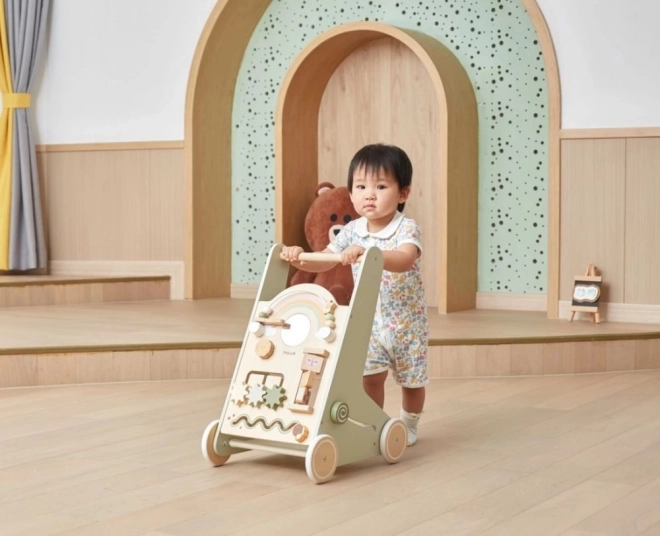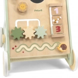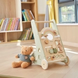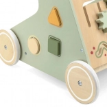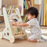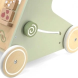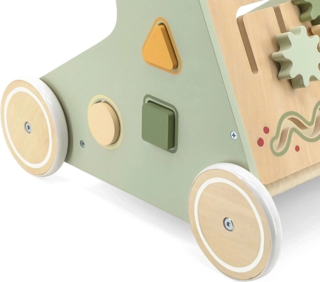 Il girello spingibile in legno PolarB Viga è progettato per accompagnare in sicurezza i bambini nei loro primi passi e motivarli a esplorare. Il pannello frontale offre numerose attività: dagli ingranaggi rotanti ai labirinti scorrevoli, fino all’inserimento di forme e allo specchietto, che stimolano naturalmente i sensi e il pensiero logico.
