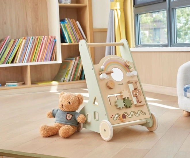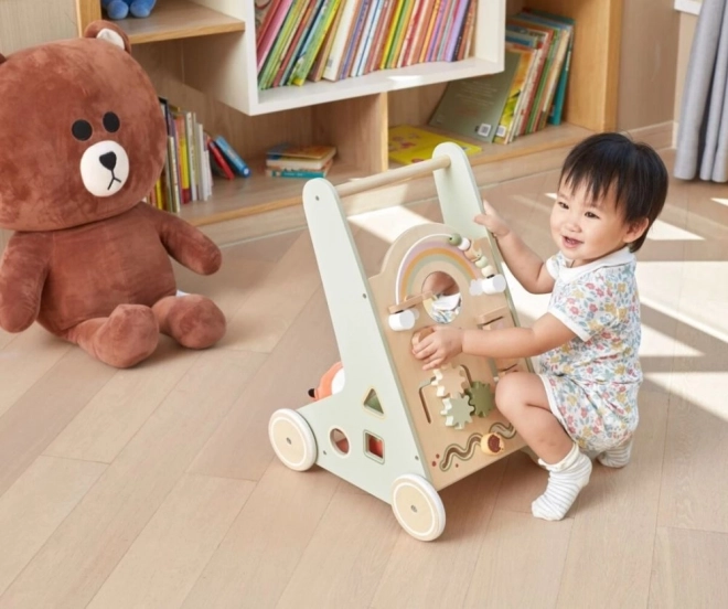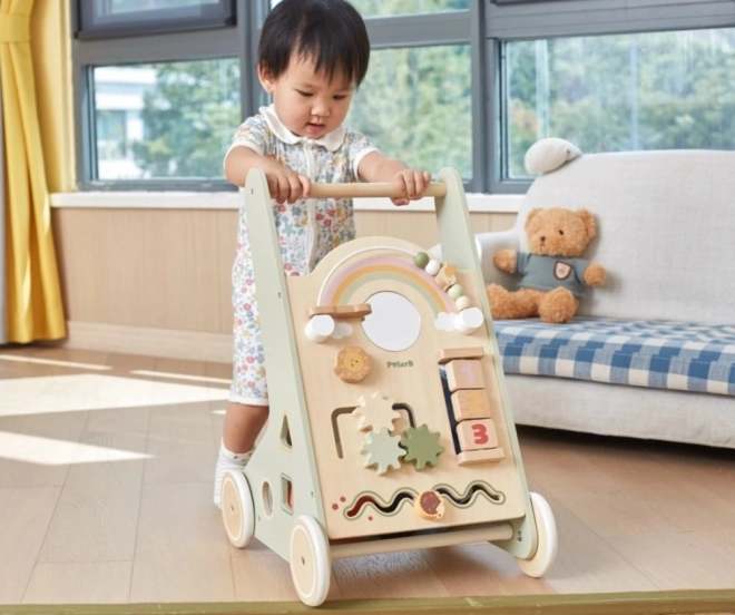 Il girello in legno dal design elegante per i più piccoli della serie PolarB di Viga combina il supporto per i primi passi con un pannello attivo multifunzionale per gioco e apprendimento. Include ingranaggi, inserimento di forme, specchietto, perline, elementi scorrevoli e una mini lavagnetta. Favorisce motricità fine e grossa, coordinazione e fiducia durante la camminata.