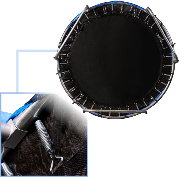 Il sistema con materassino elastico facilita i salti e assicura atterraggi morbidi, offrendo benefici per la salute come il rafforzamento muscolare e miglioramenti della forma fisica, oltre a tanto divertimento.