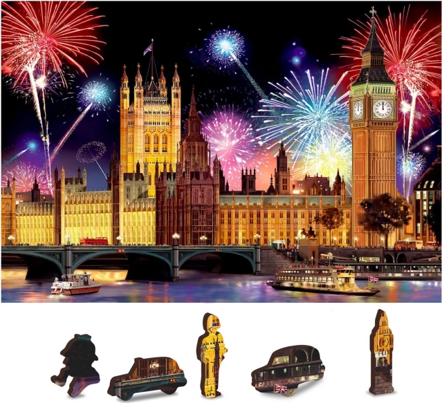Porta a casa un pezzo di Londra con il puzzle in legno affascinante Londra Notturna 2 in 1. Questo puzzle contiene un totale di 150 pezzi, di cui 30 con forma unica che rappresentano edifici e simboli iconici della capitale del Regno Unito. Preparati per una maggiore difficoltà grazie ai pezzi dalle forme diverse, che rappresentano una sfida anche per i puzzlisti esperti.