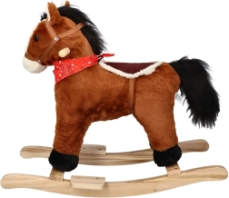 Il cavallino a dondolo marrone con morbida superficie in peluche, sella e fazzoletto decorativo è il compagno ideale per il gioco quotidiano. Grazie alla solida base a dondolo in legno, il bambino può dondolarsi in sicurezza, sviluppare la motricità ed esercitare la coordinazione.