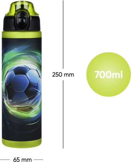 Stampa calcistica stilosa e scala laterale per monitorare l’idratazione. Ideale per la scuola, gli allenamenti e i viaggi.