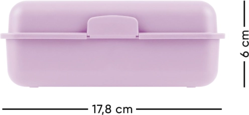 Questo pratico porta pranzo in plastica in un attraente colore viola è ideale per l’alimentazione quotidiana a scuola, al lavoro o in viaggio. La scatola offre spazio sufficiente per i tuoi snack preferiti e dispone di un divisorio che consente di riporre gli alimenti separatamente. Porta con te cibi diversi senza che si mescolino.