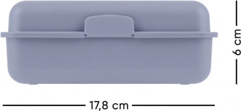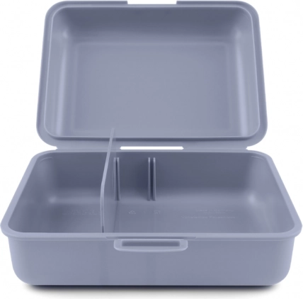 Elegante scatola in plastica di colore blu, ideale per riporre in sicurezza la tua merenda. Questa scatola è dotata di comoda chiusura con un unico gancio e divisorio interno per una facile organizzazione.