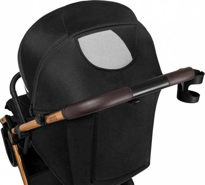 La capottina ampia in formato XXL protegge dal sole e dalla pioviggine. Il filtro UPF50+ integrato e il tessuto idrorepellente garantiscono il comfort del bambino, mentre la finestra in rete migliora la ventilazione.