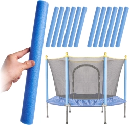 Ogni protezione ha una lunghezza di 41 cm e può essere facilmente adattata tagliandola. Grazie al diametro interno universale di 2,5 cm e a quello esterno di 4,5 cm, le guaine si adattano alla maggior parte dei pali dei trampolini comuni. La finitura blu risulta pulita e discreta.