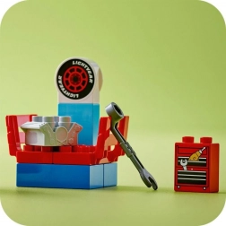 Con questo set, i bambini in età prescolare possono divertirsi con il loro camion preferito, Maniek, mentre preparano Saetta McQueen per la pista da corsa. I bambini possono usare la chiave per settare un nuovo motore e controllare le statistiche sul computer per assicurarsi che sia in condizioni perfette e pronto a battere tutti i rivali.