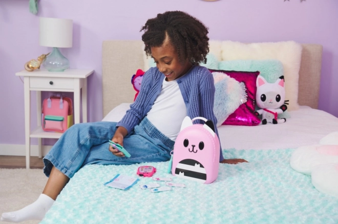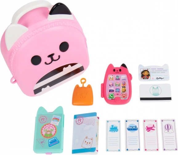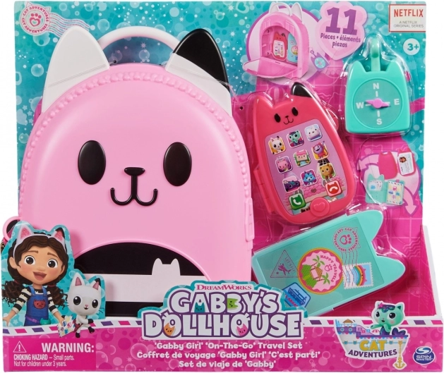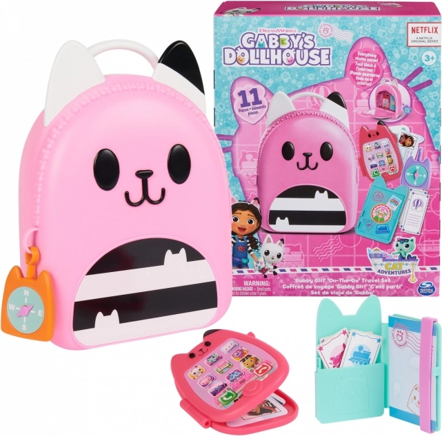 Preparati a emozionanti avventure con il set da viaggio Zaino. Questo set da 11 pezzi è l’equipaggiamento indispensabile per i fan della serie DreamWorks La casa dei gattini di Gabby che amano il gioco di ruolo. Include un telefono giocattolo pieghevole che può contenere il portachiavi a forma di gatto, la carta d’identità di Gabby, un ciondolo con bussola, un portafoglio da viaggio che ospita il passaporto giocattolo e i biglietti, e una scatolina per giocattoli super carina a forma di gattino con speciali agganci, in cui riporre tutti gli splendidi giochi della scuola materna. Ogni pezzo del set è stato realizzato con design e stile autentici, proprio come l’attrezzatura da viaggio di Gabby nella serie. I bambini ameranno correre per casa facendo finta di viaggiare per il mondo proprio come Gabby. Per avventure ancora più entusiasmanti, cerca la fotocamera, che entra anch’essa nel contenitore, così potrai divertirti a scattare foto durante i viaggi (fotocamera venduta separatamente). Per un’ultima sorpresa, scansiona il codice QR sulla confezione del set da viaggio per accedere all’app gratuita La casa dei gattini di Gabby (disponibile per iOS e Android). I peluche, le bambole, le figure e i playset de La casa dei gattini di Gabby sono giocattoli ideali per bambine e bambini che amano usare la fantasia e creare il proprio mondo di casette per bambole: preparati a infinite avventure con il set da viaggio di Gabby in movimento.