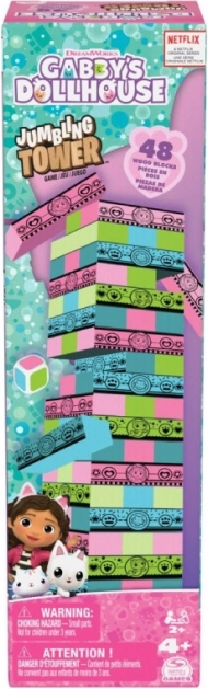 Con 48 blocchi di legno in blu, rosa e verde e i motivi preferiti della casa magica di Gabri, il gioco è visivamente attraente. I bambini saranno entusiasti dei disegni e delle icone dei loro personaggi preferiti. Per ulteriore divertimento, il gioco include anche un dado colorato che determina quale blocco rimuovere.