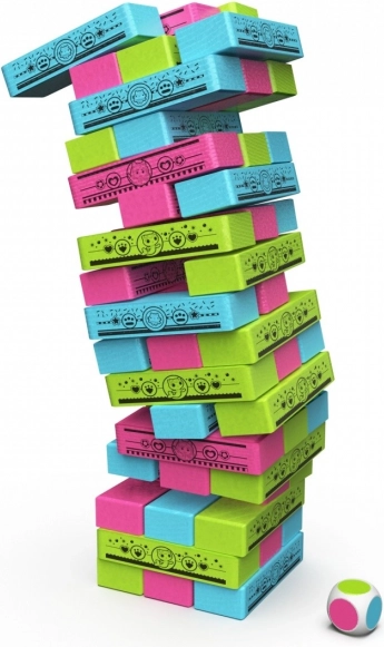 Il gioco è fornito di un dado colorato che determina quale colore di blocco scegliere, aumentando momenti improvvisi di sorpresa e divertimento.