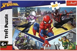 Questi puzzle a tema Spider-Man contengono 160 pezzi e, una volta assemblati, formeranno un'immagine di dimensioni 410x275 mm. Il puzzle illustra Spider-Man, i suoi amici e nemici.