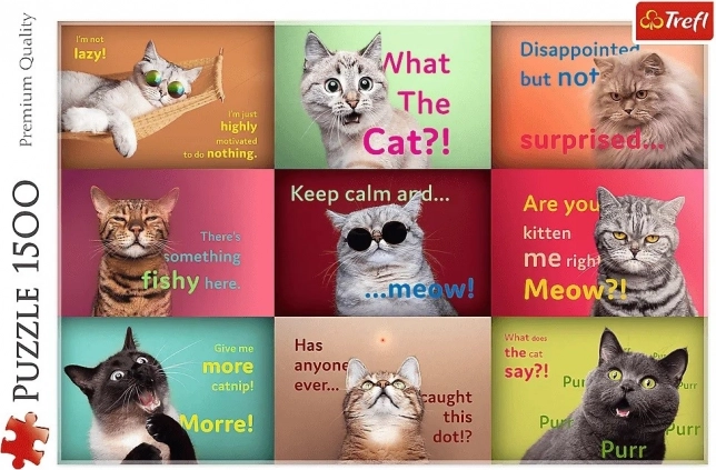 Questi puzzle Ritratti divertenti di gatti hanno 1500 pezzi e una volta assemblati creano un'immagine di dimensioni 85 x 58 cm. Realizzati con materiali di alta qualità e carta calandrata speciale che riflette la luce, sono ideali per un facile montaggio. Creato in Polonia con riguardo per l'ambiente.