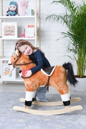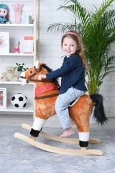 La superficie soffice è piacevole al tatto, mentre la sella sagomata aiuta a mantenere la postura corretta. Il dondolio sviluppa equilibrio e coordinazione.