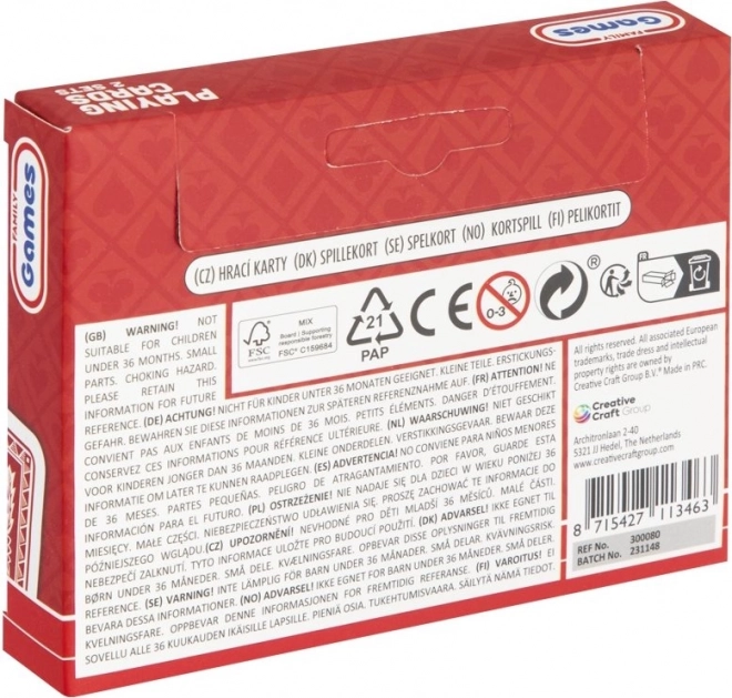 Queste carte da gioco sono del tipo francese e sono perfette per giocare a canasta, jolly, bridge, poker o solitario. La confezione include 2 mazzi da 55 carte, che offrono grande flessibilità durante il gioco. Ogni carta misura circa 8,5 x 5,5 cm, garantendo una facile gestione e leggibilità dei valori.