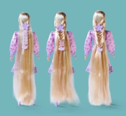 I lunghi capelli biondi della bambola offrono infinite possibilità per acconciature e styling creativi.