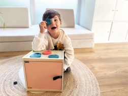 Questa moderna scatola sensoriale e tattile in legno è progettata per stimolare i sensi del tuo bambino. Grazie a due aperture laterali e sportelli superiori ribaltabili, i bambini possono esplorare in modi diversi - attraverso il tatto, la vista, l'ascolto e l'olfatto. La scatola è eccellente per lo sviluppo delle abilità motorie ed è anche adatta per scopi ergoterapeutici.