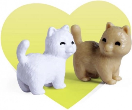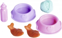 Nella confezione troverai diversi giocattoli e accessori che imitano le vere necessità degli animali, come ciotole a cuore o una pallina.