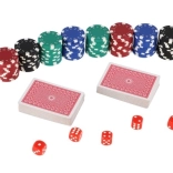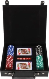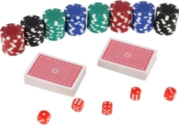 Nel set trovi tutto ciò che serve per giocare subito: 100 gettoni nei colori di base, 2 mazzi di carte per un gioco scorrevole e 5 dadi classici per altri popolari giochi da tavolo. Grazie alle dimensioni compatte, il set è facile da trasportare e ideale anche in viaggio.