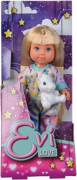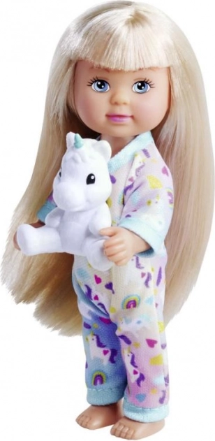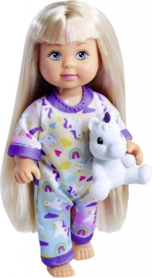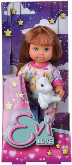La dolce bambolina Evička con un morbido pigiama e un unicorno di peluche farà felice ogni bambino. Tre diverse varianti, ideale per il gioco creativo e di fantasia. Altezza della bambola 12 cm, adatta dai 3 anni.