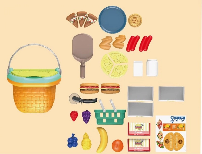 - Cestino da picnic, frutta, verdura, pizza, hamburger e altri accessori