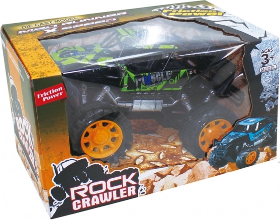 Questo resistente modello di rock crawler è fatto per l’avventura. Grazie alla trazione a frizione basta trascinare la macchinina sulla superficie e rilasciarla: partirà subito in avanti. Le grandi ruote fuoristrada e il telaio rialzato superano ostacoli, tappeti e superfici esterne.