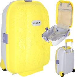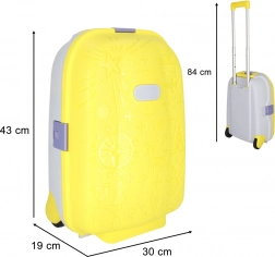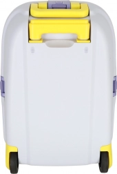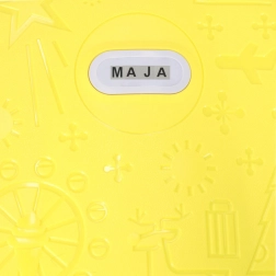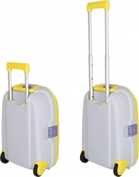 Leggero e resistente trolley da cabina per bambini con due ruote e manico telescopico estraibile per viaggiare in tutta comodità. Offre una grande capacità grazie a due scomparti, ruote con LED per maggiore visibilità e divertimento, e la possibilità di personalizzazione con il nome tramite adesivi. Il colore giallo brillante e i motivi in rilievo giocosi entusiasmeranno ogni piccolo viaggiatore.
