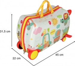 Adorabile valigia per bambini con ruote e simpatici animaletti che rende ogni viaggio più piacevole. È facile da manovrare, spaziosa e, grazie alla struttura robusta, può servire anche come seduta/cavalcabile per i momenti di riposo del piccolo viaggiatore.
