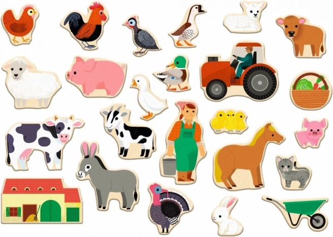 Scopri la magia della campagna con il divertente set di magneti Djeco In fattoria. La pratica scatola contiene 24 magneti in legno dipinti a tema fattoria, ideali per sviluppare la fantasia e la motricità fine e per giochi tematici sul frigorifero o su una lavagna magnetica. Realizzazione in legno resistente e presa facile garantiscono tanto divertimento per i bambini.