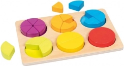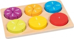 Il puzzle educativo in legno Frazioni è uno strumento ideale per i piccoli che vogliono imparare i fondamenti della matematica in modo divertente. Grazie ai segmenti colorati e al design semplice, i bambini apprendono facilmente concetti come metà, quarti e altre frazioni. La base in legno facilita l'assemblaggio e garantisce una lunga durata del prodotto.