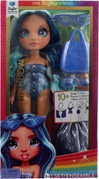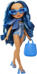 La bambola SKYLER della collezione Rainbow High Swim & Style colpisce per i lunghi capelli blu, il costume trendy e tanti accessori per infinite possibilità di styling. Grazie agli arti snodati posa con facilità ed è pronta per ogni avventura estiva.