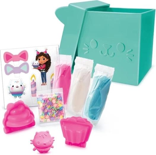 La simpatica confezione “felina” nasconde una pasta soffice e facile da modellare, che ispira a sfornare finti dolci. I bambini possono creare tortine, decorarle e giocare alla piccola pasticcera – tutto nello spirito della storia preferita Gabi casa delle gattine.