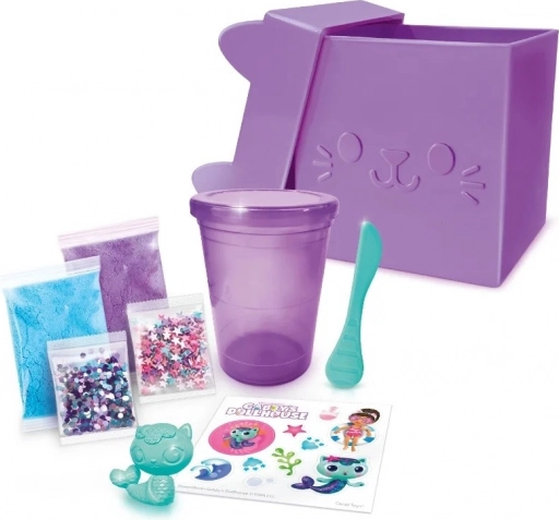 Questa pasta modellabile della linea Gabi's Cat House, racchiusa in un’adorabile scatola ispirata a quella in cui la protagonista della serie riceve i pacchi Miau-Miau-Posta, offre un fantastico divertimento creativo. Preparare il proprio slime, decorarlo, schiacciarlo e allungarlo: i bambini lo adorano!