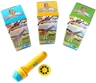 Un proiettore che, al buio, proietta immagini di animaletti su una superficie liscia. I bambini imparano a riconoscere gli animali e allenano la motricità mentre usano il proiettore.