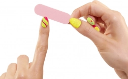 All’interno ti aspettano più di 15 sorprese: outfit chic, scarpe, gioielli, supporto per la bambola e accessori per il salone delle unghie – limetta, 2 set di unghie autoadesive e removibili, glitter e 2 boccette di “smalto”. Il tutto in un allegro stile fruttato che stimola la creatività e sviluppa la motricità fine.