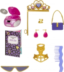 Cassie Cool conquista con un outfit scintillante e vistosi capelli viola. Il set include occhiali, borsetta, corona e altri capi fashion per combinazioni infinite.