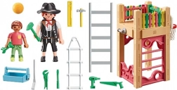 Questo è il set di gioco ideale nel parco giochi, dove la signora falegname è diligentemente impegnata nel suo lavoro e abilmente monta i pezzi. Il giovane ragazzo è impaziente di iniziare a giocare. Gli Starter Packs unici di PLAYMOBIL incoraggiano i bambini a esplorare diversi mondi di gioco. I set contengono figure con accessori che possono essere assemblati molto rapidamente per iniziare a giocare immediatamente. Responsabilità ecologica: il set di gioco è composto per oltre l'80% da materiali ecologici, inclusi plastici riciclati e ottenuti biologicamente.