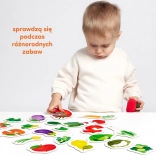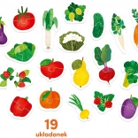 Sui puzzle coloratissimi sono raffigurate sfiziose bontà dell’orto e del frutteto. Cercare e abbinare le metà è un’attività di sviluppo completa che migliora la coordinazione occhio-mano e permette di imparare e consolidare in modo divertente nuove parole e conoscenze sul mondo circostante.