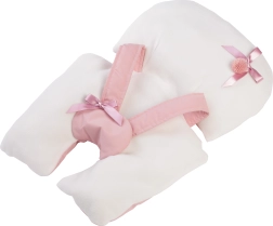Il morbido tappetino con fiocco decorativo e cinture di sicurezza funge da pratica seggiolina per una seduta stabile della bambola.