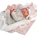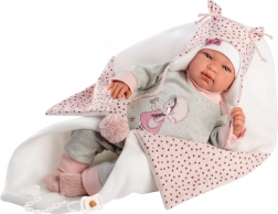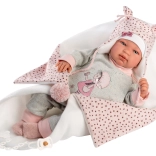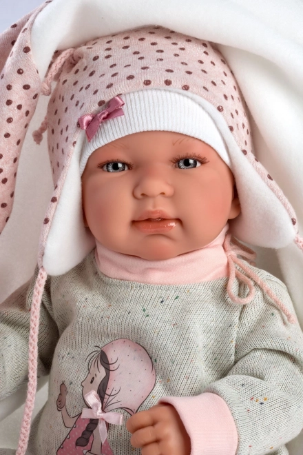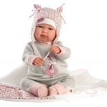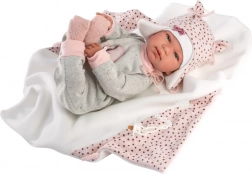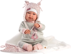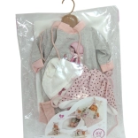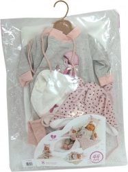 Regala alla tua bambola un nuovo outfit chic che stimola la fantasia e la gioia del gioco. Questo set da 4 pezzi per bambole NEW BORN (43–44 cm) unisce comfort e stile: pantaloni e top coordinati sono abbinati a una morbida copertina con pompon da annodare e altri teneri accessori. La produzione artigianale in Spagna garantisce dettagli precisi e materiali piacevoli, adatti al gioco dei bambini.