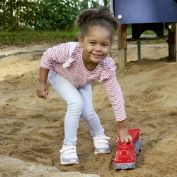 Il vagone con cassone contiene facilmente sabbia o piccoli giocattoli e permette uno scarico rapido e divertente del carico.