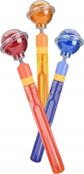 Il soffiabolle è disponibile in quattro colori vivaci – rosso, arancione, blu e viola – così ognuno può scegliere il proprio preferito. 3× batterie AG3 sono già inserite e non sono sostituibili, quindi il divertimento può iniziare subito dopo l'apertura.