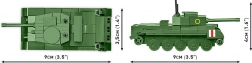 Questo mini modello della COBI Historical Collection è in scala 1:72, misura circa 9 cm di lunghezza una volta assemblato e riproduce fedelmente le caratteristiche chiave dell’originale. Grazie alla torretta mobile e alle ruote è adatto sia all’esposizione sia al gioco. Le stampe con simboli britannici donano al modello un aspetto autentico.