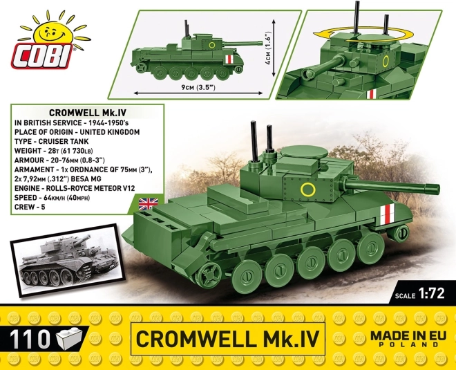 Il Cromwell Mk.IV era un carro medio britannico veloce e maneggevole impiegato dal 1944, dotato di cannone da 75 mm e motore Rolls‑Royce Meteor da 600 CV. Ebbe un ruolo significativo nella campagna di Normandia e in altre operazioni nell’Europa occidentale; venne utilizzato anche dalla 1ª Divisione corazzata polacca.