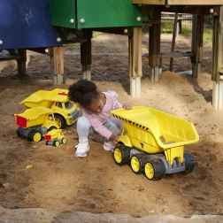 Il ribaltabile BIG Power Worker Mega è progettato per piccole mani e grandi idee. Il design giallo vivace con grafiche moderne sembra un vero veicolo da cantiere, mentre il cassone da 13 litri gestisce sabbia, acqua e giocattoli. Con una lunghezza di 65 cm, è più lungo del 30% rispetto al modello più piccolo della linea BIG Power Worker Maxi e offre ancora più spazio per il gioco.