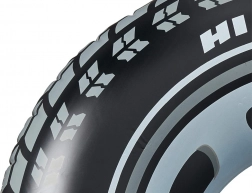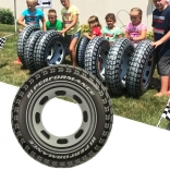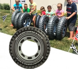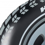 Il design sportivo della ciambella con motivo realistico del battistrada e colori contrastanti attira l'attenzione e conferisce alla ciambella un carattere unico.