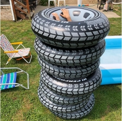Offriamo una ciambella gonfiabile dal design stiloso a pneumatico, ideale per il relax e il divertimento in acqua. Questo prodotto si distingue per il suo motivo realistico del battistrada e i colori contrastanti, che gli conferiscono un carattere unico. È una scelta eccellente sia per piscine che per spiagge o laghi.
