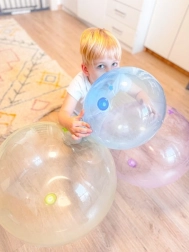 Il design trasparente e colorato aggiunge magia al gioco: la bolla è morbida al tatto ma al tempo stesso sufficientemente robusta per il divertimento di tutti i giorni. Si gonfia e si sgonfia facilmente, quindi è adatta ai viaggi e al divertimento quotidiano.