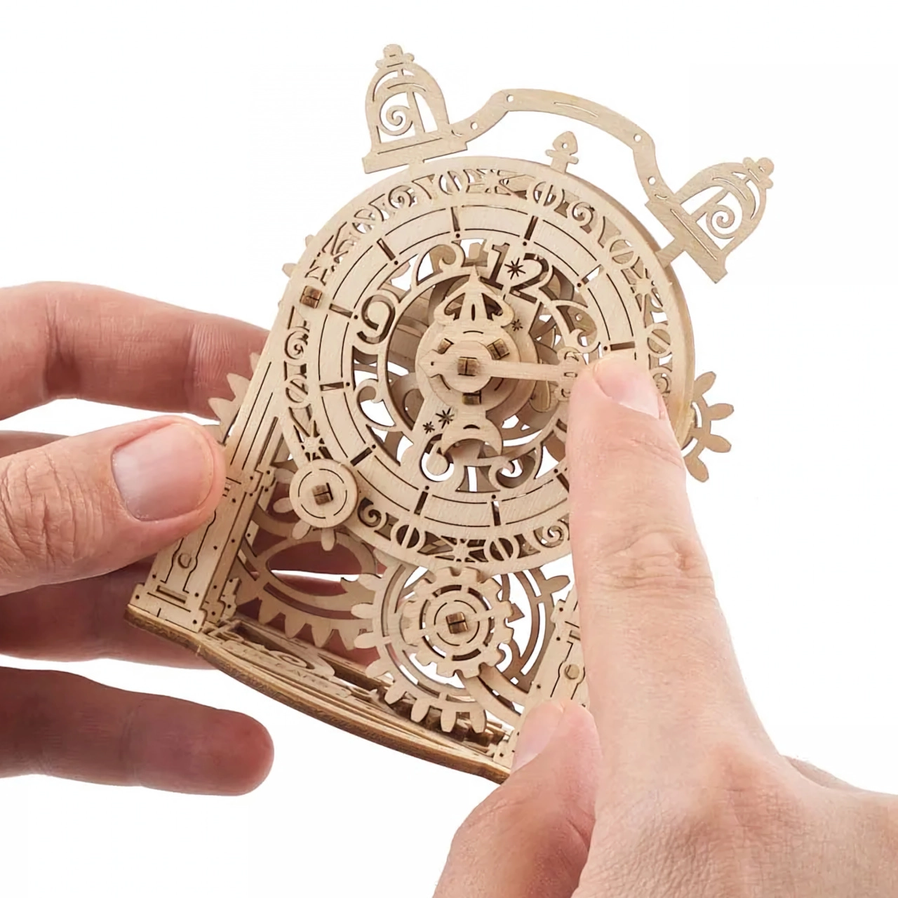 Scopri il fascino di tempi passati con il modello in legno della sveglia decorativa UGEARS. Questo elegante puzzle 3D in compensato di alta qualità offre un vero rapporto di trasmissione tra lancetta dei minuti e delle ore, bassa difficoltà e coinvolgente ticchettio meccanico delle campanelle. Ideale per bambini e adulti che desiderano comprendere i principi della meccanica, godersi una costruzione rilassante senza colla e creare una raffinata decorazione in legno.