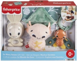 Il set regalo FISHER‑PRICE Mondo dei sensi è una selezione studiata di prime attività per neonati che stimolano l’esplorazione grazie ai contrasti, alle diverse texture e ai suoni delicati. Ogni pezzo è progettato per una presa sicura, per dare sollievo durante la dentizione e per supportare lo sviluppo sensoriale precoce.